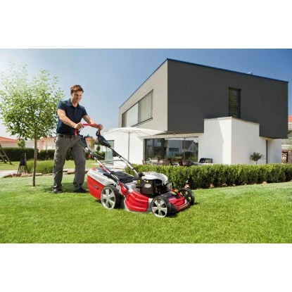 Der Al-Ko Benzin-Rasenmäher Highline 523 VS mit 4in1-Funktion: Mähen, Fangen, Mulchen und Seitenauswurf. Der leistungsstarke B&S Series 675 EX Ready Start Motor macht es möglich. Die 70 l Fangbox verfügt über eine Füllstandsanzeige, mit der man stets den Überblick hat. Ein exklusiver, ergonomisch geformter und höhenverstellbarer Führungsholm mit Softgriff sorgt für zusätzlichen Komfort. Das Max Airflow Gehäuse bringt beste Mäh- und Fangergebnisse. Mit stufenlosem Hinterradantrieb Speedcontrol und kugelgelagerten Rädern für leichtes Schieben. Ein praktischer Kunststoff-Tragegriff erleichtert den Transport.
