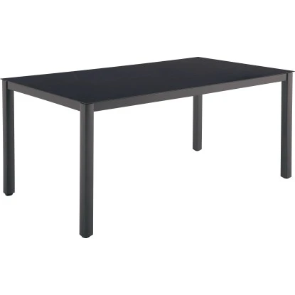 Dieser Gartentisch Harris begeistert durch eine edle Tischplatte aus Glas und ist mit farblich passenden Gestell in schwarzer Marmoroptik ausgestattet. Dieses wird aus pflegeleichtem Aluminium hergestellt. Für die Fertigung der Tischplatte kommt Glas zum Einsatz. Durch sein geringes Gewicht lässt sich der Tisch mühelos verschieben. Mit den Maßen von 160 cm x 90 cm (B x T) eignet er sich für vier Personen.