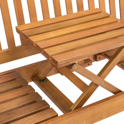 Diese indoba® Gartenbank der Serie Sun Flair bietet als besonderes Highlight einen ausklappbaren Tisch mit den Maßen 49 cm x 42 cm in der Mitte der Sitzfläche. Ideal geeignet für ein Picknick im heimischen Garten oder eine Runde gepflegtem Schach. Praktischer Nutzen und Komfort vereint in dieser wetterfesten Gartenbank. Sie bietet Platz für zwei bzw. drei Personen, ist hochwertig verarbeitet und mit Teaköl vorbehandelt.