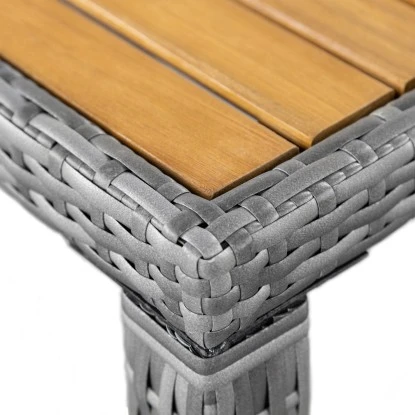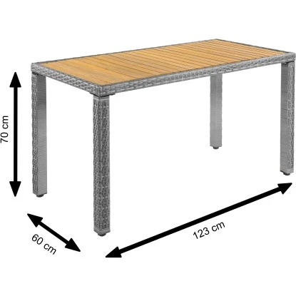 Für Stabilität und lange Haltbarkeit Ihrer Gartenmöbel sorgt die robuste Stahlrahmenkonstruktion, um die das Polyrattan gewickelt wurde. Letzteres ist witterungsbeständig und besonders pflegeleicht wie auch die edle Tischplatte aus geöltem Akazienholz. Somit ist jahrelange Freude am Garten-Set Amalfi garantiert.