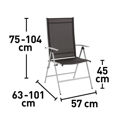 Der Klappsessel Suriname eignet sich zum entspannten und gemütlichen Zusammensitzen in Ihrem Garten oder auf der Terrasse. Er lässt sich mühelos zusammenklappen und kann so platzsparend aufbewahrt werden. Im geklappten Zustand ist er gut zu transportieren. Besonderen Komfort bietet er durch die geräumige Sitzfläche, eine höhere Rückenlehne sowie zwei praktische Armlehnen. Sein klassisches und schlichtes Design lässt sich mit vielen Stilen kombinieren. Bei einer Höhe von 104 cm beträgt die Breite 57 cm. Seine Tiefe liegt bei 62 cm.