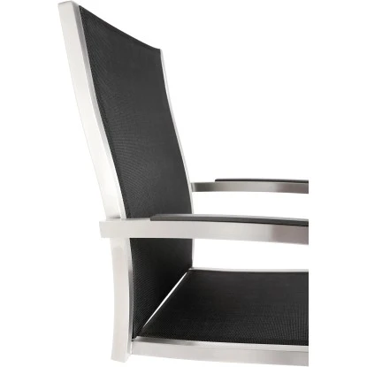 Der Schwingstuhl besteht aus elegantem Edelstahl (Qualität V 304) und ist dadurch besonders stabil und langlebig, rostfrei, witterungsbeständig und leicht zu reinigen. Die Bespannung des Stuhls besteht aus strapazierfähigem und wetterfesten Ergotex, das hautfreundlich und atmungsaktiv ist. Die Ergotex-Bespannung ist auswechselbar. Bei Platzbedarf lässt sich der Stuhl platzsparend stapeln.