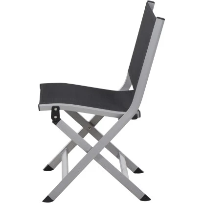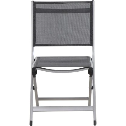 Der Siena Garden Klappstuhl Tesoro misst 58 cm x 51 cm x 86 cm und besteht aus silberfarbenem, pulverbeschichtetem Aluminium. Die Flächen des Gestells sind aus Grauem Ranotex®-Gewebe 4 x 4.