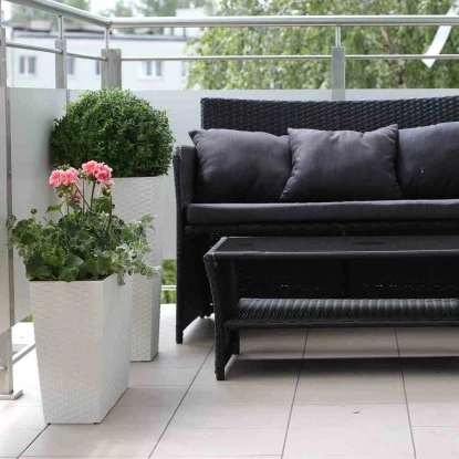Das Pflanzgefäß ist durch seine schlichte und zeitlose Gestaltung sowie der Rattanoptik aus dem Garten nicht wegzudenken. Das Gefäß ist In- und Outdoor geeignet und verfügt über eine sehr gute Qualität, durch welches dieses witterungs- und UV-beständig ist. Außerdem verfügt das Pflanzgefäß über Vorbohrungen für Wasserablauflöcher.