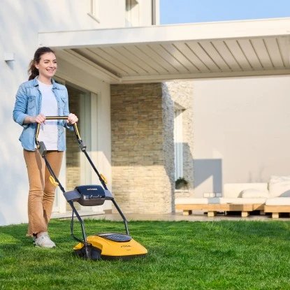 Der Stiga Akku-Luftkissenmäher, der erste Akku-Mäher mit Luftkissen, erleichtert das Rasenmähen und die Gartenarbeit. Mit einem innovativen Luftkissen schwebt der Mäher über den Rasen und lässt sich ganz einfach manövrieren.